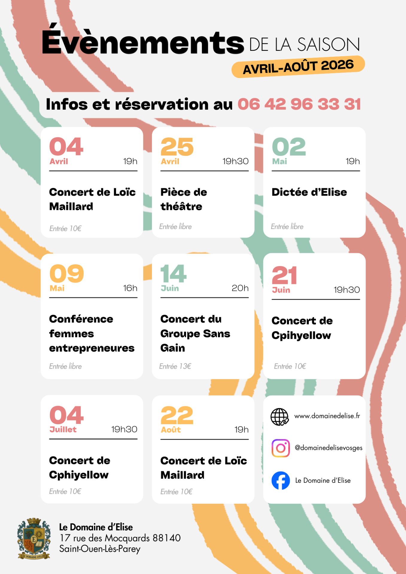 Découvrez les prochains rendez-vous qui feront vibrer le domaine et réservez dès maintenant votre place pour vivre des moments inoubliables.